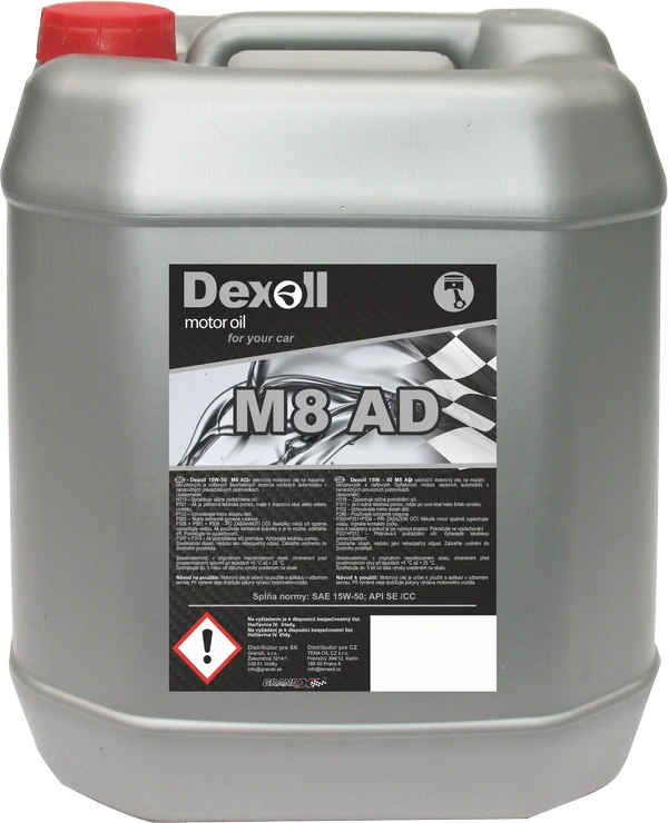 Dexoll 15W-50 M8 AD je celoročný motorový olej na mazanie benzínových a