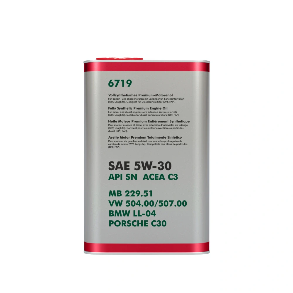 olej motorový, specifikace: SAE 5W-30, API SN, ACEA C3, VW 504 00/ 507 00, BMW Longlife-04, MB 229.51, PORSCHE C30